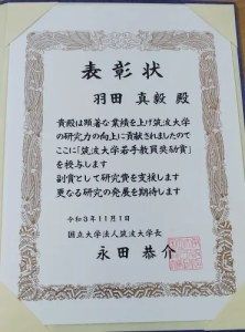 筑波大学 若手教員奨励賞